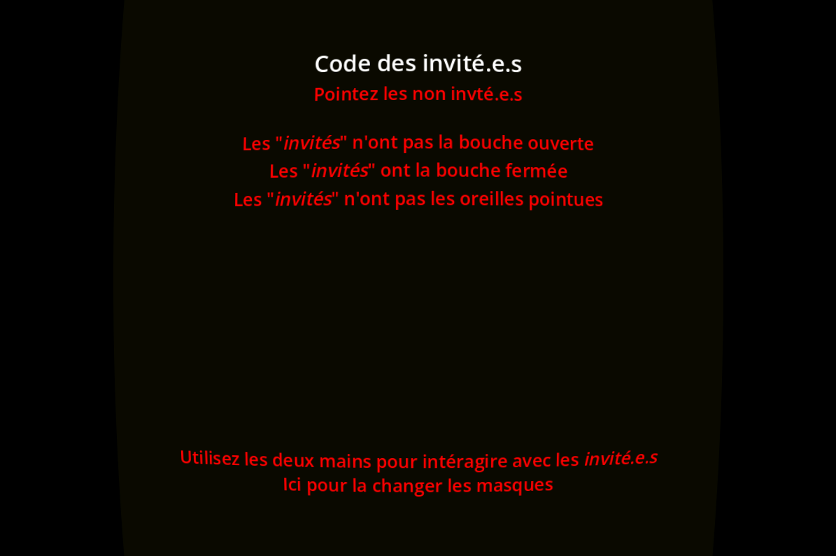 Votre rôle est d'indentifier les personnes non invité.e.s à la soirée. vous disposez du code a respecter : deux yeux, un certain nombre de dents, des pupilles.